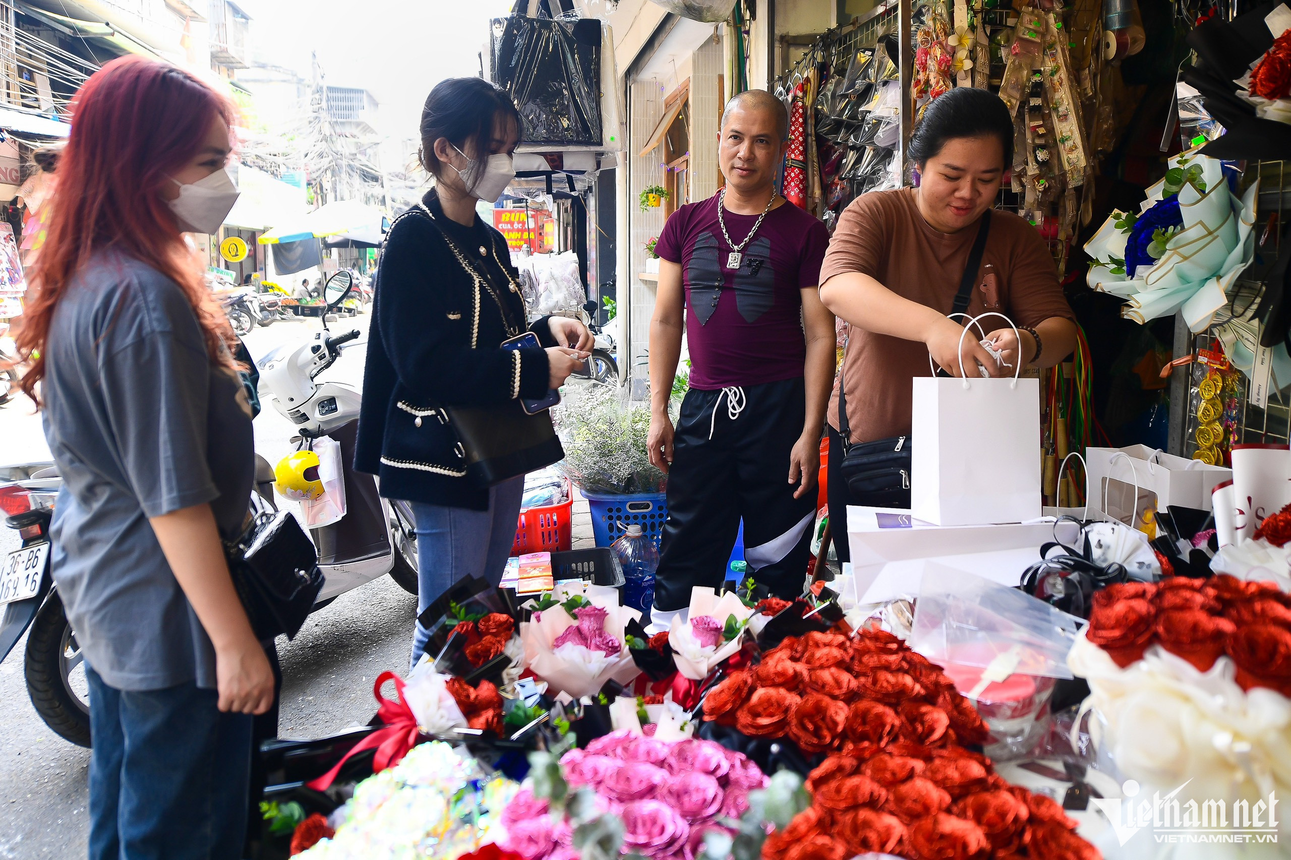 Ngày thường một bông hồng nhập vào với giá 4.000 đồng nhưng hôm nay đã lên tới 7.000 đồng/bông. "Tôi hạ giá bán rồi mà vẫn kén khách lắm", chị Hoa Anh Tú (chủ cửa hàng) nói.