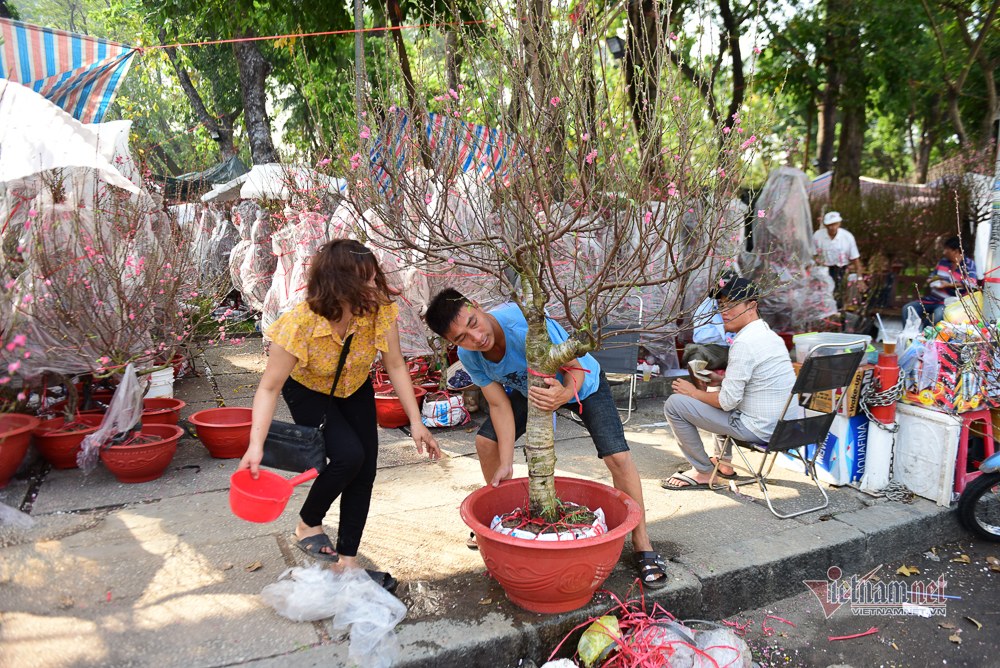 | Những cành đào ngoài bắc với khí hậu lạnh gặp phải thời tiết nóng bức miền nam phải liên tục làm mát, tưới nước để hoa không khô héo. |