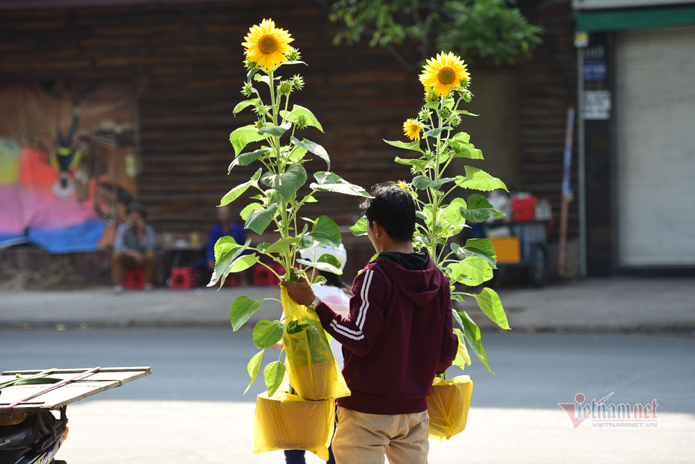 | Những cây hướng dương được người dân mua sắm chưng Tết. |