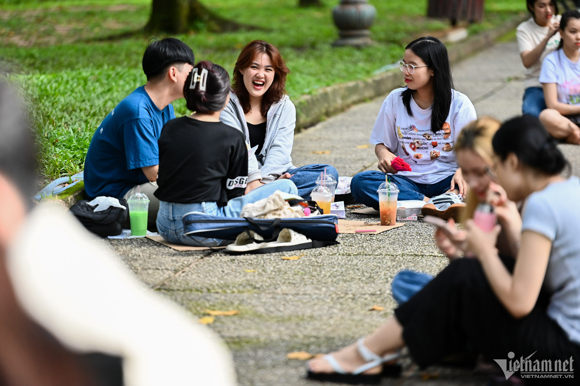 Trong không gian xanh mát, yên tĩnh, các bạn trẻ cùng nhau ngồi trò chuyện, chụp ảnh, chơi bài và ngắm nhìn thành phố.