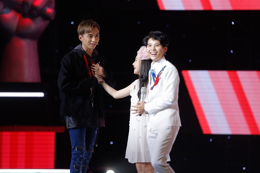 The Voice Kids tập 1 - Để vuột mất thí sinh tiềm năng vào giây phút cuối cùng, cả hai HLV không giấu được cảm xúc thất vọng khi cùng ngồi gục xuống và ôm lấy nhau ngay trên sân khấu.