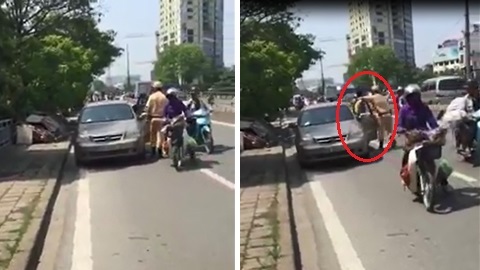 CSGT bất ngờ khống chế lái xe giữa phố Hà Nội