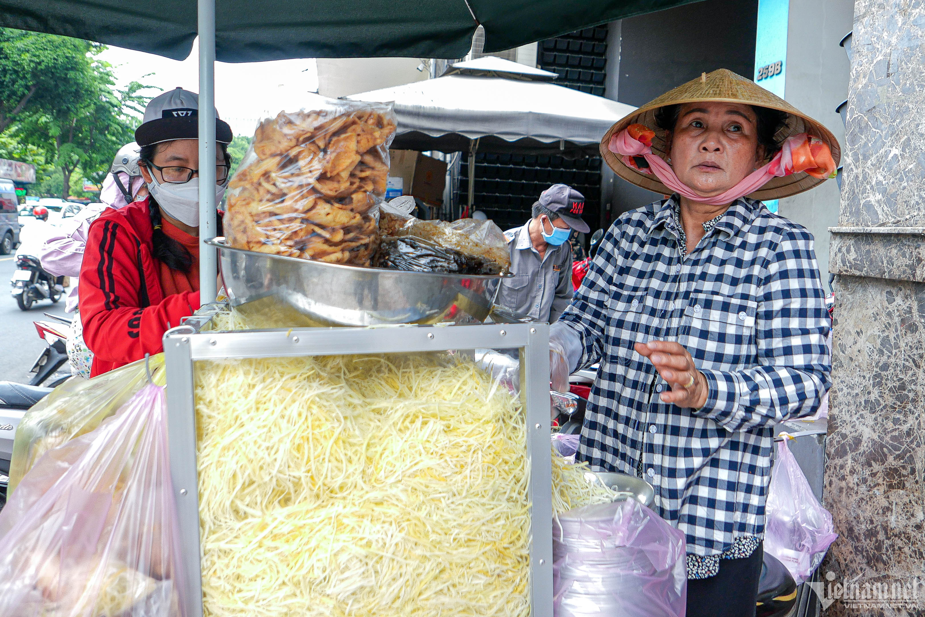 16h chiều, quầy bán gỏi khô bò của dì Sáu bắt đầu tấp nập thực khách.