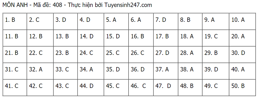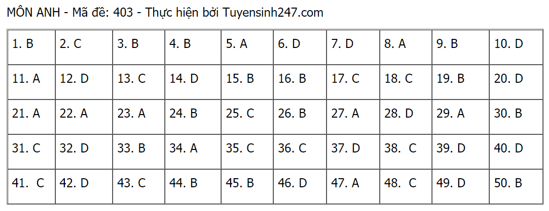 Đáp án môn Tiếng Anh thi Tốt nghiệp THPT 2021 tất cả 24 mã đề do Bộ Giáo dục - Đào tạo công bố chính thức.