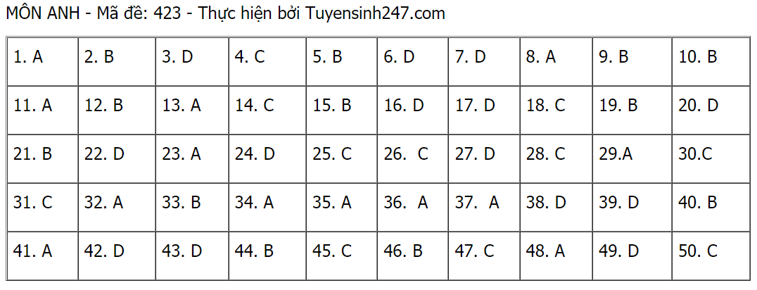 Đáp án chính thức các môn Ngoại ngữ thi tốt nghiệp THPT 2023