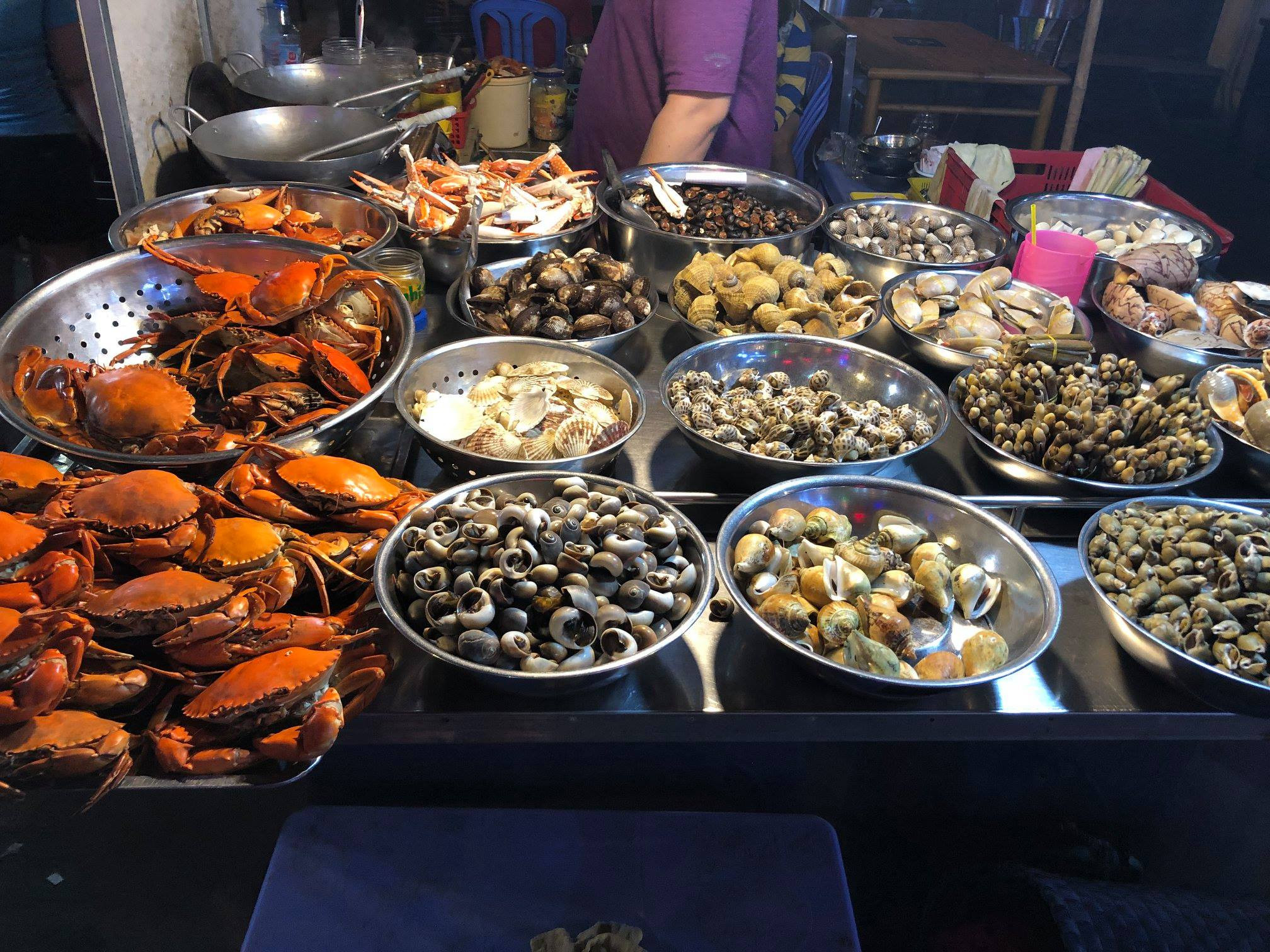Ốc, hải sản,... là những món ăn được thực khách ưa chuộng khi đến phố đi bộ Bùi Viện (Ảnh: Phan Đậu)