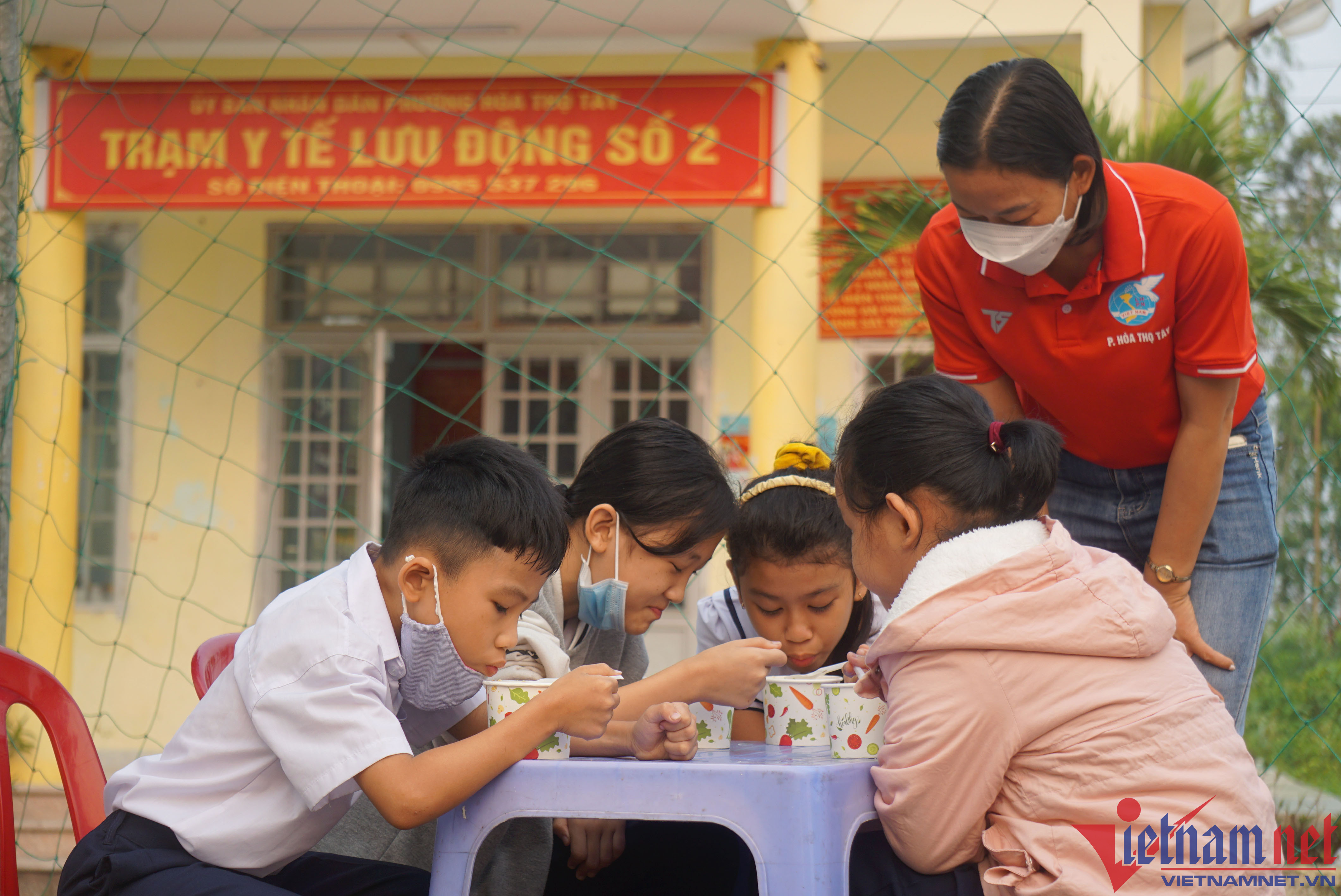 “Tuần nào cháu cũng đợi đến thứ ngày thứ 3 để được nhận thức ăn sáng từ các cô nấu. Ba mẹ cháu cũng đỡ cho tiền ăn sáng, thức ăn các cô nấu rất ngon nên con rủ thêm bạn có hoàn cảnh khó ăn đến ăn cùng”, Trung Kiên kể.