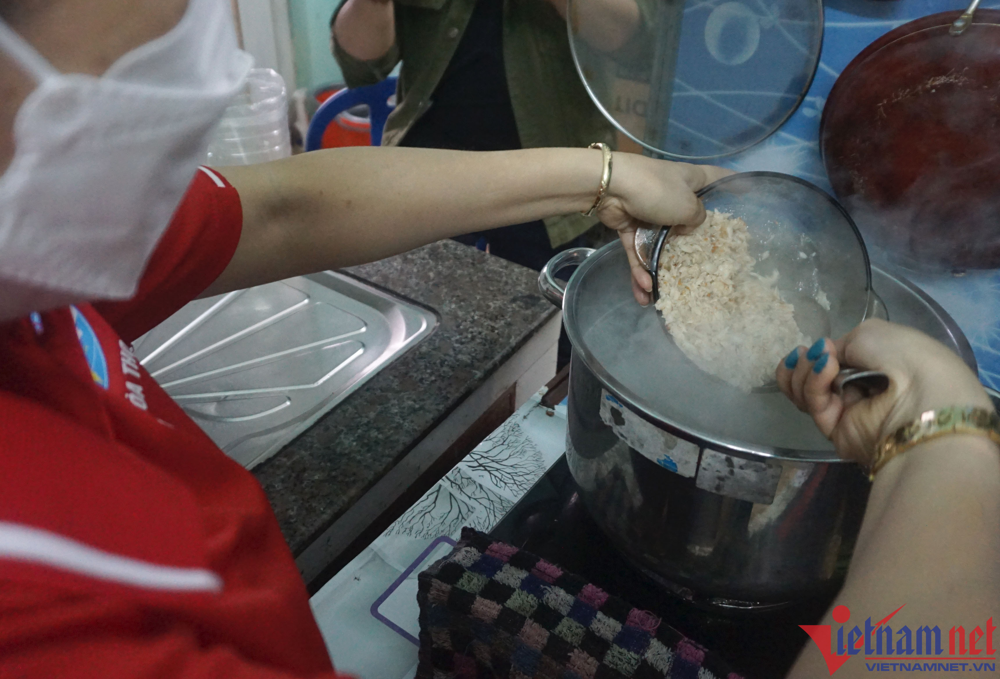 Trong gian bếp nhỏ, mỗi người chia nhau từng việc để kịp nấu các suất ăn. Để có nguyên liệu tươi ngon, các chị dậy từ 4h30 đến chợ mua về chế biến.