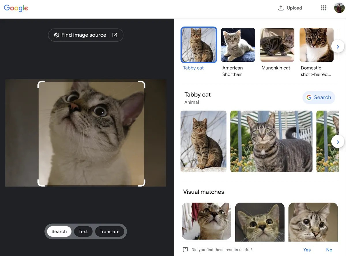 Nhấp vào nút Ống kính (biểu tượng máy ảnh) sẽ nhắc bạn tải lên hoặc dán URL của một hình ảnh. Sau đó, bạn được đưa đến một trang khá quen thuộc nếu đã từng sử dụng ứng dụng Ống kính hoặc bất kỳ tính năng tích hợp nào khác của Google.