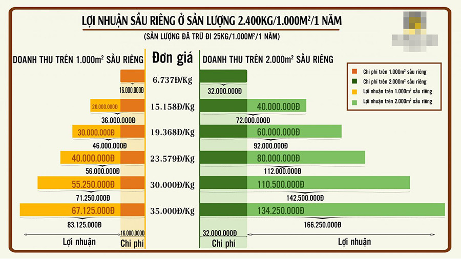 “Các giống sầu riêng mới có bán giá cao hơn nhưng mất nhiều công chăm sóc và chi phí cũng cao hơn. Mỗi hecta có thể thu về vài trăm triệu. Vấn đề là khi góp vốn, nhà đầu tư cần kiểm soát chi phí đầu vào chứ không thể khoán trắng cho người khác”, ông T. nói.
