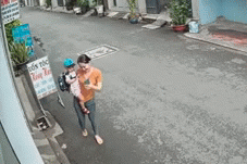 Người phụ nữ bế con nhỏ và sử dụng điện thoại đi bộ trên đường thì bị một tài xế GrabBike áp sát giật điện thoại ngay giữa ban ngày trên đường TP.HCM.