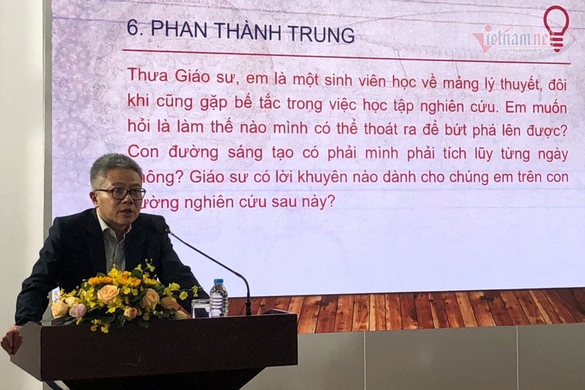 Ông Châu khuyên sinh viên nên tham gia vào một nhóm nghiên cứu nào đó, có một người thầy dẫn dắt đủ tốt. Người này sẽ đưa cho bạn những vấn đề, bài toán để mình nghiên cứu.