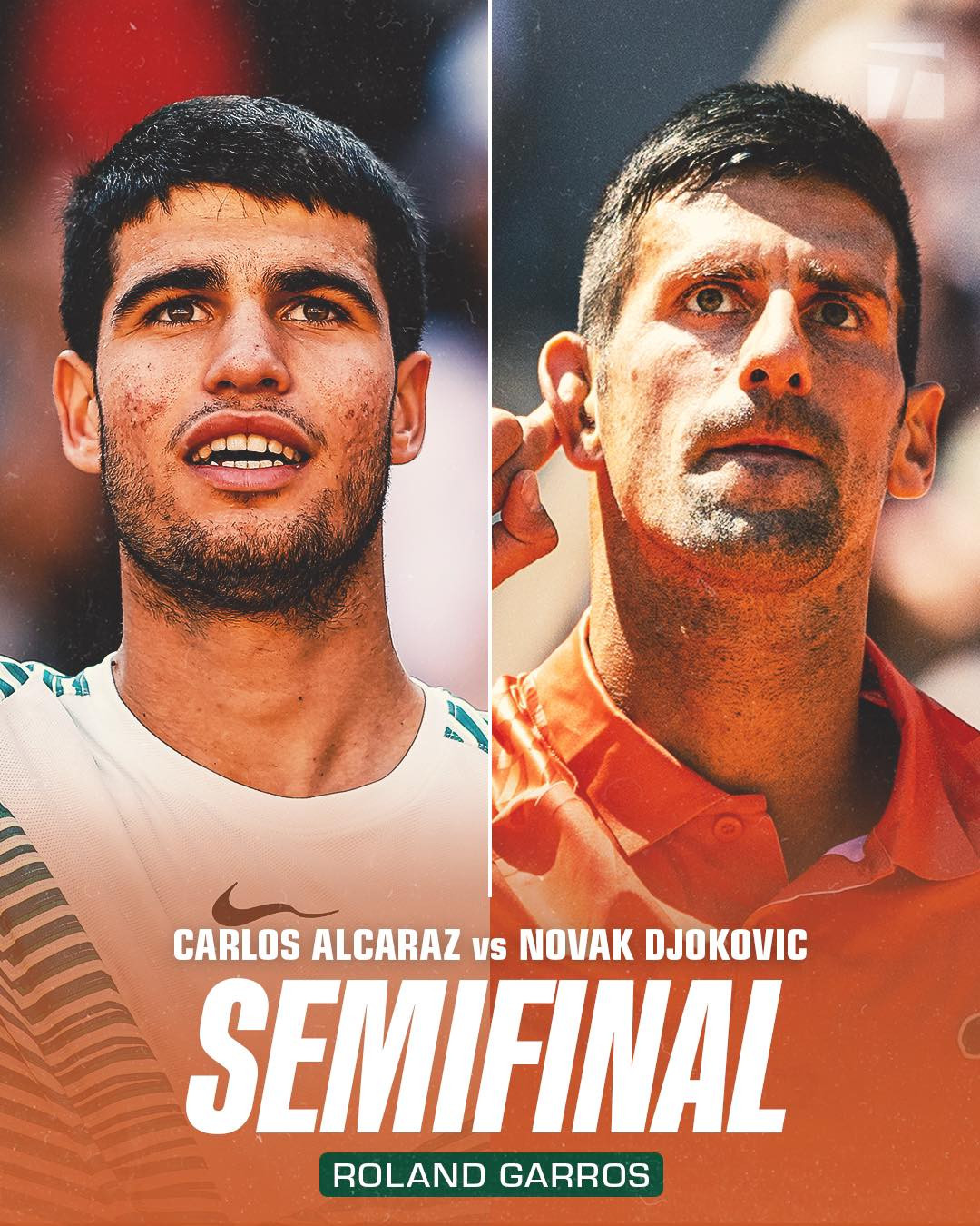 Trận bán kết Roland Garros 2023 giữa Novak Djokovic vs Carlos Alcaraz là lần đầu tiên hai tay vợt gặp nhau.