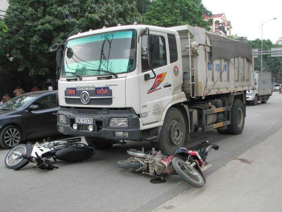 Hà Nội: Xe tải 'nuốt' xe máy vào gầm, hai người nguy kịch
