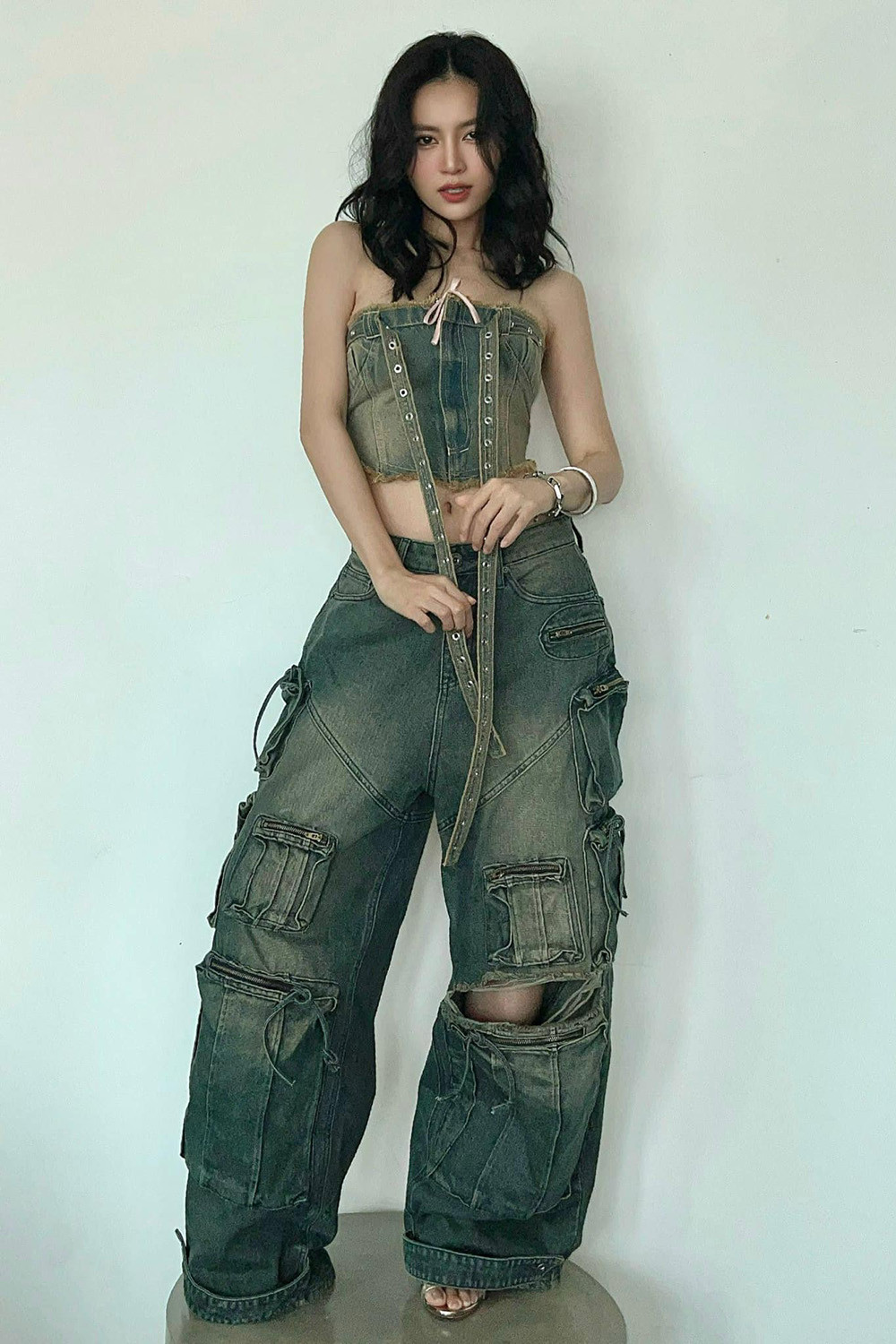 Hồ Ngọc Hà khí chất dự tiệc tối trong bộ trang phục hoạ tiết monogram, Ninh Dương Lan Ngọc cá tính, bụi bặm với set denim on denim.