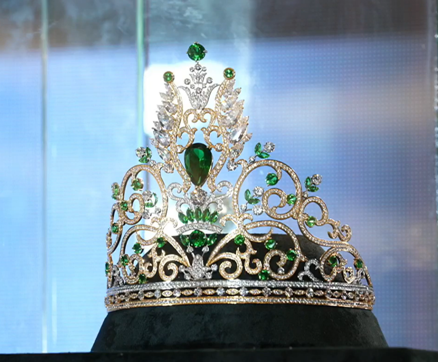 Vương miện dành cho hoa hậu mang tên “The wings of beauty” được chế tác gấp rút trong hơn 1 tháng, được tạo nên từ vàng 18K kết hợp cùng 1.522 viên White Zirconia và 42 viên ngọc lục bảo có kích cỡ, hình dáng khác nhau. Vương miện sử dụng hoa văn mềm mại, làm nổi bật những viên ngọc lục bảo. Thiết kế tượng trưng cho nhan sắc và trí tuệ, không chỉ thể hiện vẻ đẹp và tâm hồn mà còn đại diện hoài bão chắp cánh cho những ước mơ của các cô gái. Các vương miện của á hậu cũng được chế tác từ vàng và đá quý.