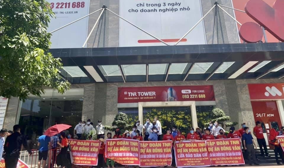 Bức xúc vì chủ đầu tư bội tín khách hàng đã nhiều lần căng băng rôn với nội dung: “Công ty CP Phát triển Hà Nam lừa đảo khách hàng tại dự án đất nền TNR Đồng Văn – Hà Nam”; “Yêu cầu Tập đoàn TNR dự án Đồng Văn – Công ty Phát triển Hà Nội thực hiện đúng hợp đồng cam kết cho khách hàng, không được lừa đảo khách hàng”… Mới đây nhiều khách hàng tiếp tục tập trung tại trụ sở Tập đoàn TNG Holdings Vietnam ở đường Nguyễn Chí Thanh (Đống Đa, Hà Nội) đòi quyền lợi.