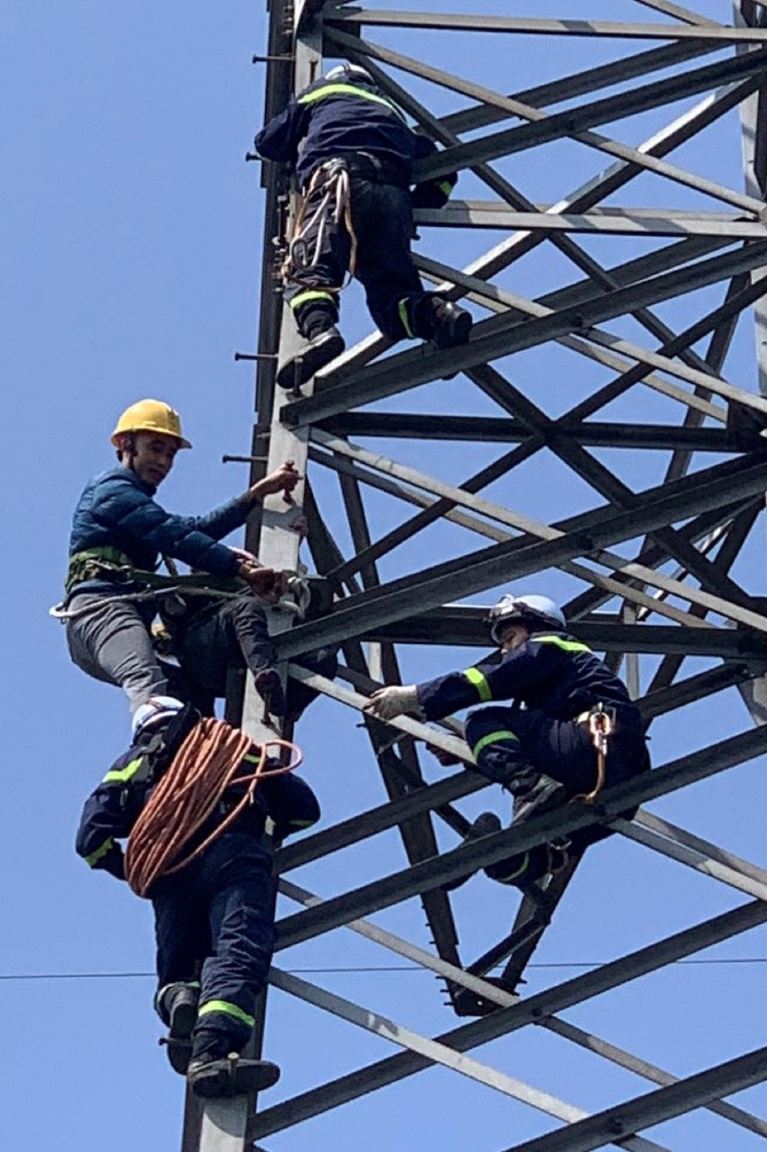 Một mũi cứu nạn cứu hộ khác liên tục thuyết phục trấn tĩnh, đánh lạc hướng nạn nhân để cán bộ, chiến sĩ khác leo lên cột điện.
