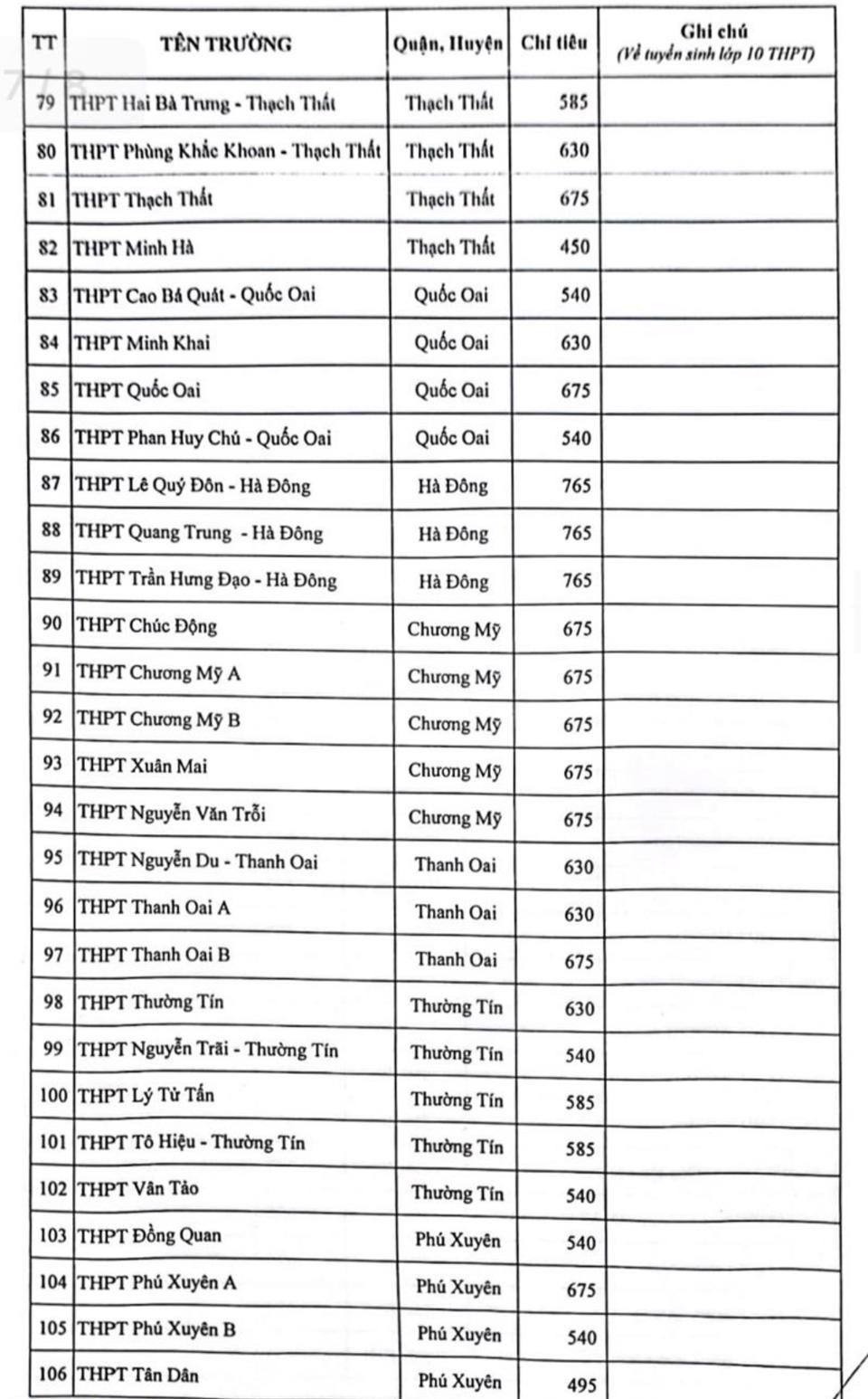 Chỉ tiêu tuyển sinh vào lớp 10 của từng cơ sở giáo dục như sau:
