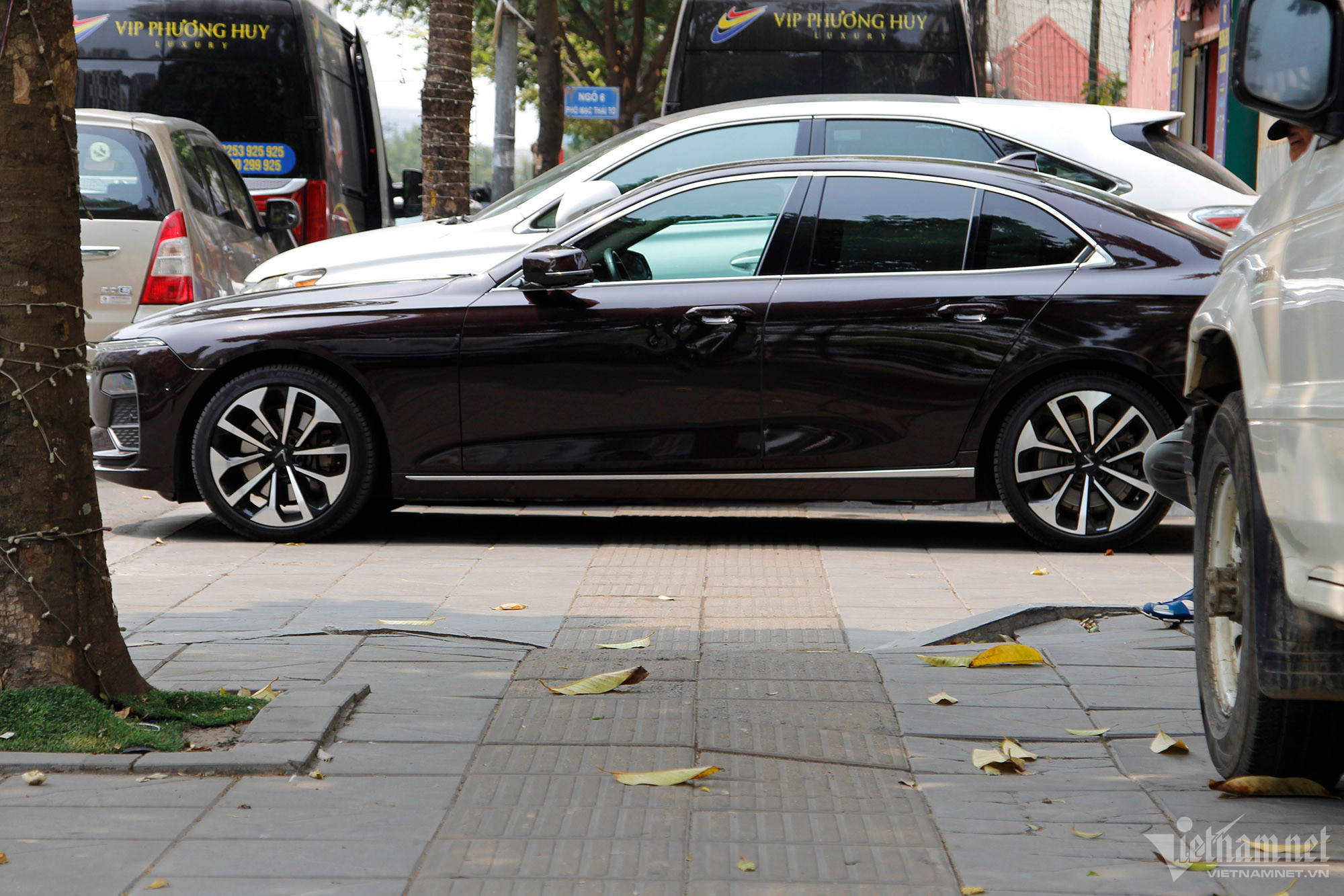 Tại tuyến đường Thái Hà, dù đã có rào chắn nhưng các phương tiện vẫn ngang nhiên di chuyển trên vỉa hè.