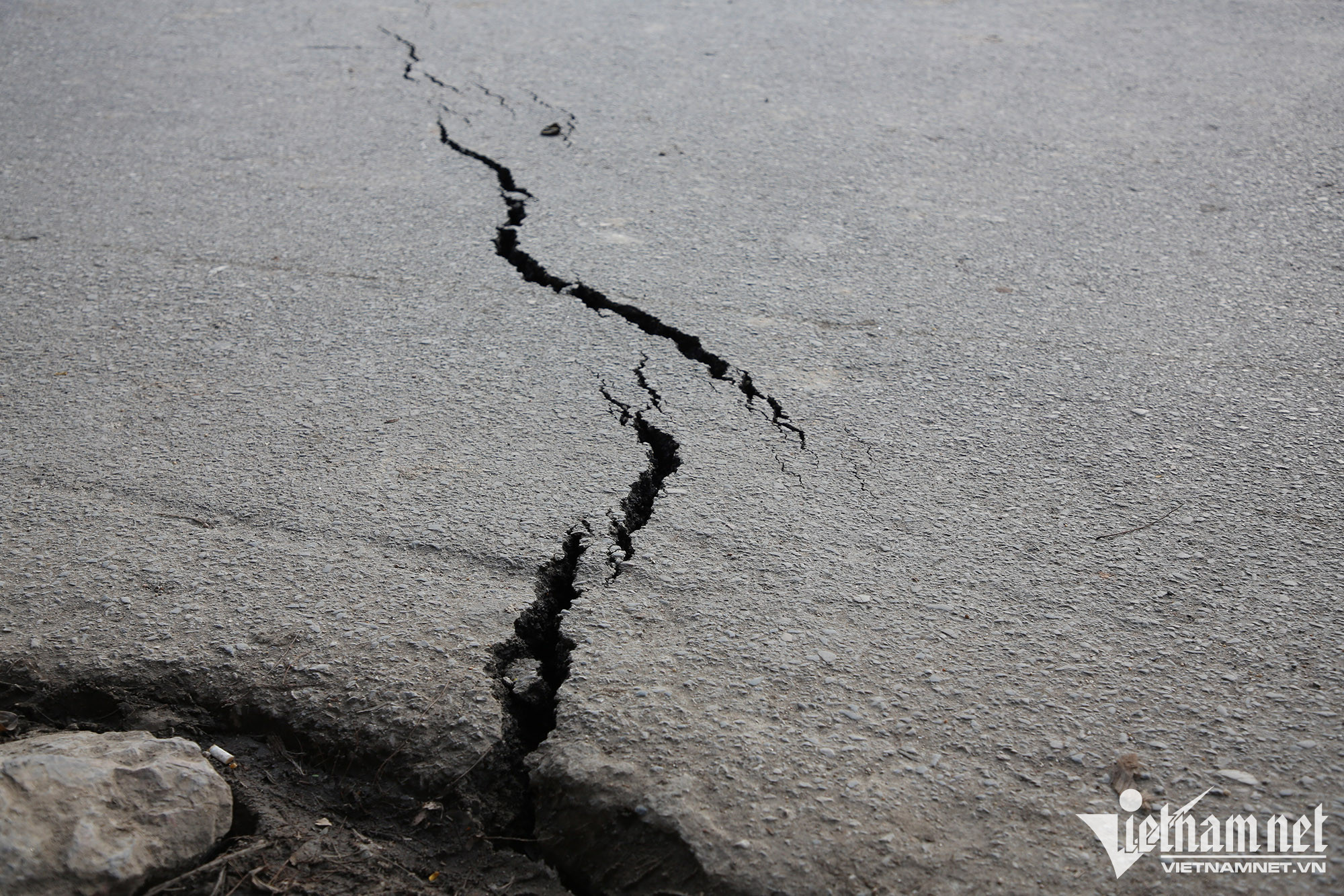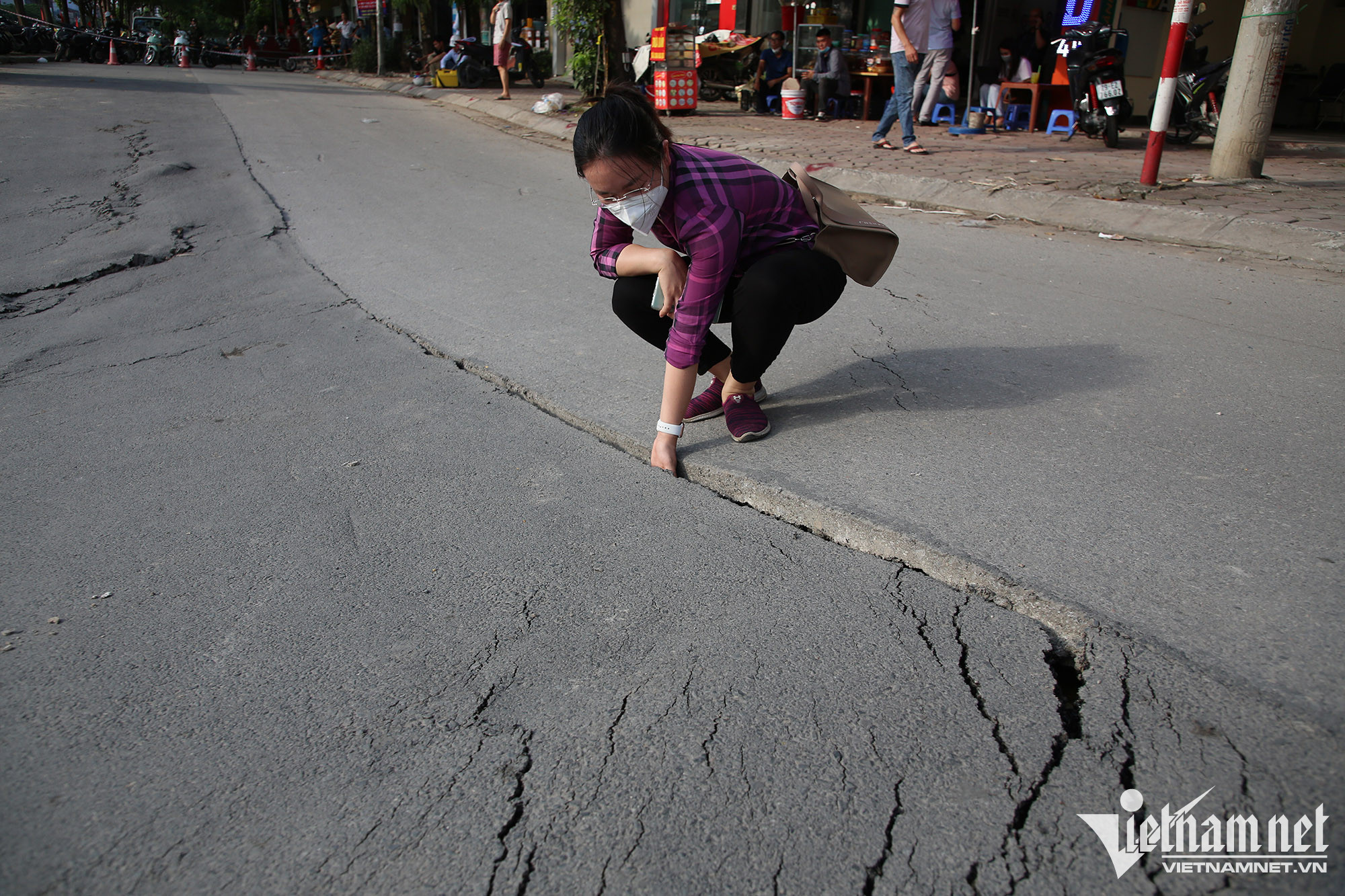 Ghi nhận tại hiện trường, đoạn sụt lún kéo dài gần 30m, từ số nhà 409 đến 415 đường Vũ Tông Phan. Trên mặt đường, nhiều đoạn bị kéo nứt, khe hở rộng ra khoảng 15cm.