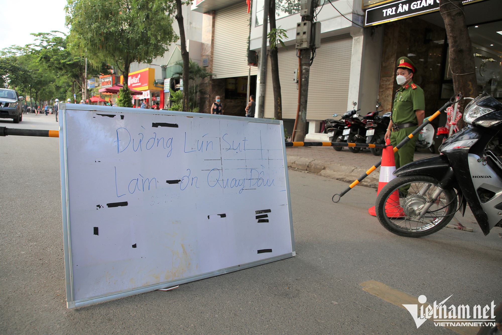 Nhận được thông tin, UBND phường Khương Đình, Công an phường đã có mặt bảo vệ hiện trường, đồng thời rào chắn đường để các phương tiện không lưu thông qua đoạn sụt lún.