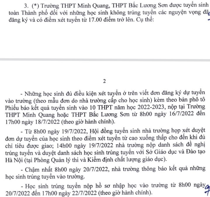 Sở GD-ĐT Hà Nội cũng duyệt chỉ tiêu và điểm chuẩn trúng tuyển bổ sung vào lớp 10 đối với thí sinh diện F0 xét tuyển năm học 2022-2023 như sau: