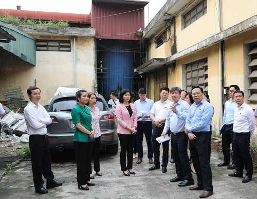 | Đoàn giám sát của HĐND TP kiểm tra tại dự án sử dụng đất sai mục đích của Công ty CP Haprosimex Thăng Long (Ảnh: dbndhanoi.gov.vn) |