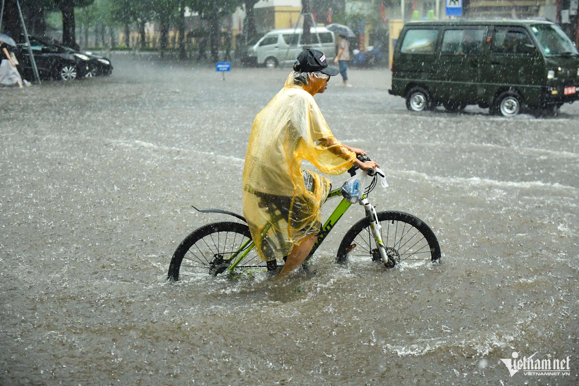Nhiều tuyến đường trung tâm Hà Nội ghi nhận tình trạng ngập nặng, như đường Lê Hồng Phong, Ông Ích Khiêm.
