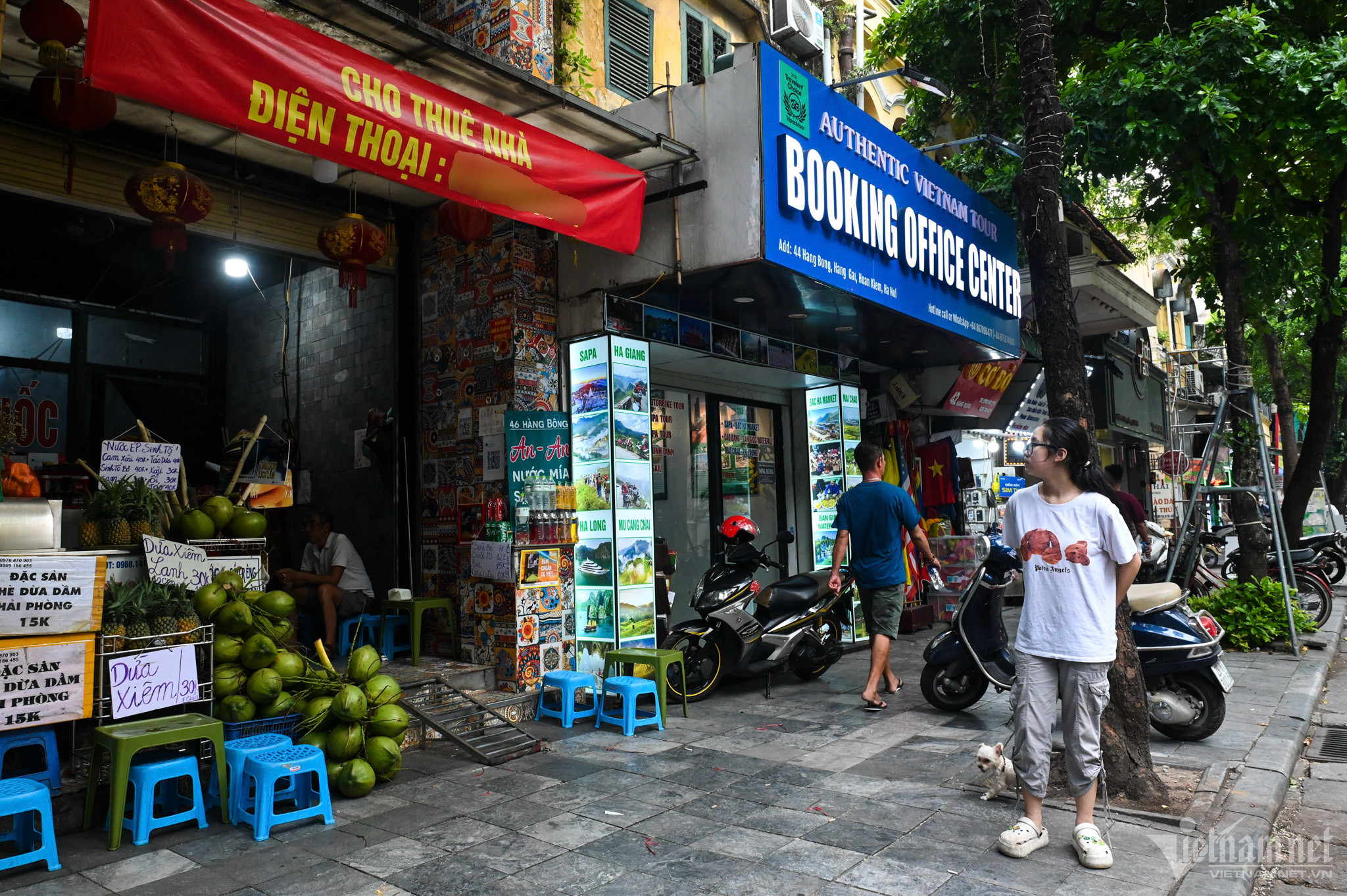 Một ngân hàng cũng vừa trả lại mặt bằng trên phố Hàng Khoai. Phía ngoài hiện nay được căng biển cho thuê. Xe máy, hàng rong bán hoa quả, rau củ xếp đầy trước cửa.