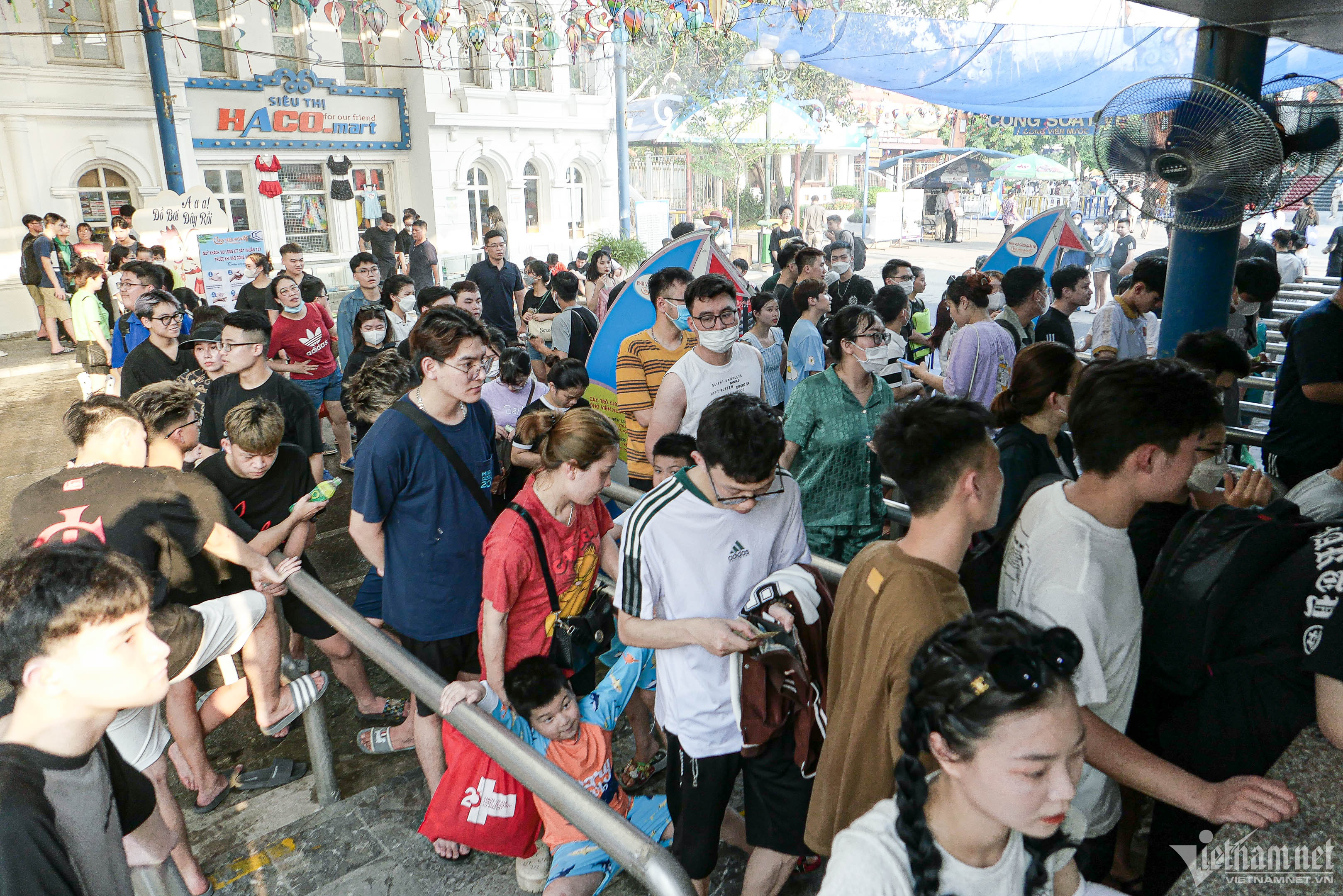 Từ 16h, du khách xếp hàng dài để mua vé vào công viên nước. Giá vé hiện tại dành cho người lớn là 170.000đ/vé ngày thường và tăng thêm 20.000 đồng/vé vào cuối tuần. Giá vé trẻ em là 145.000đ/vé ngày thường và 160.000đ/vé vào cuối tuần. Khi du khách tới sau 17h sẽ có mức vé giảm giá.