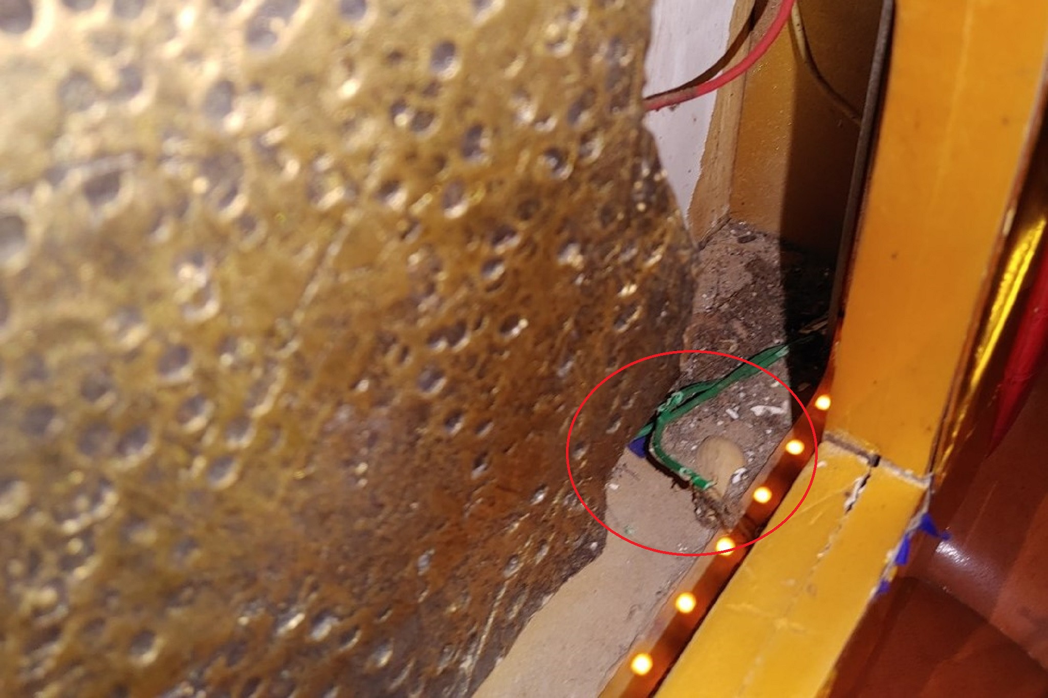 Một số bảng “lối thoát hiểm” không được bật sáng hoặc đã hỏng hóc. Tại vách tường trang trí có một số dây điện bị hở.