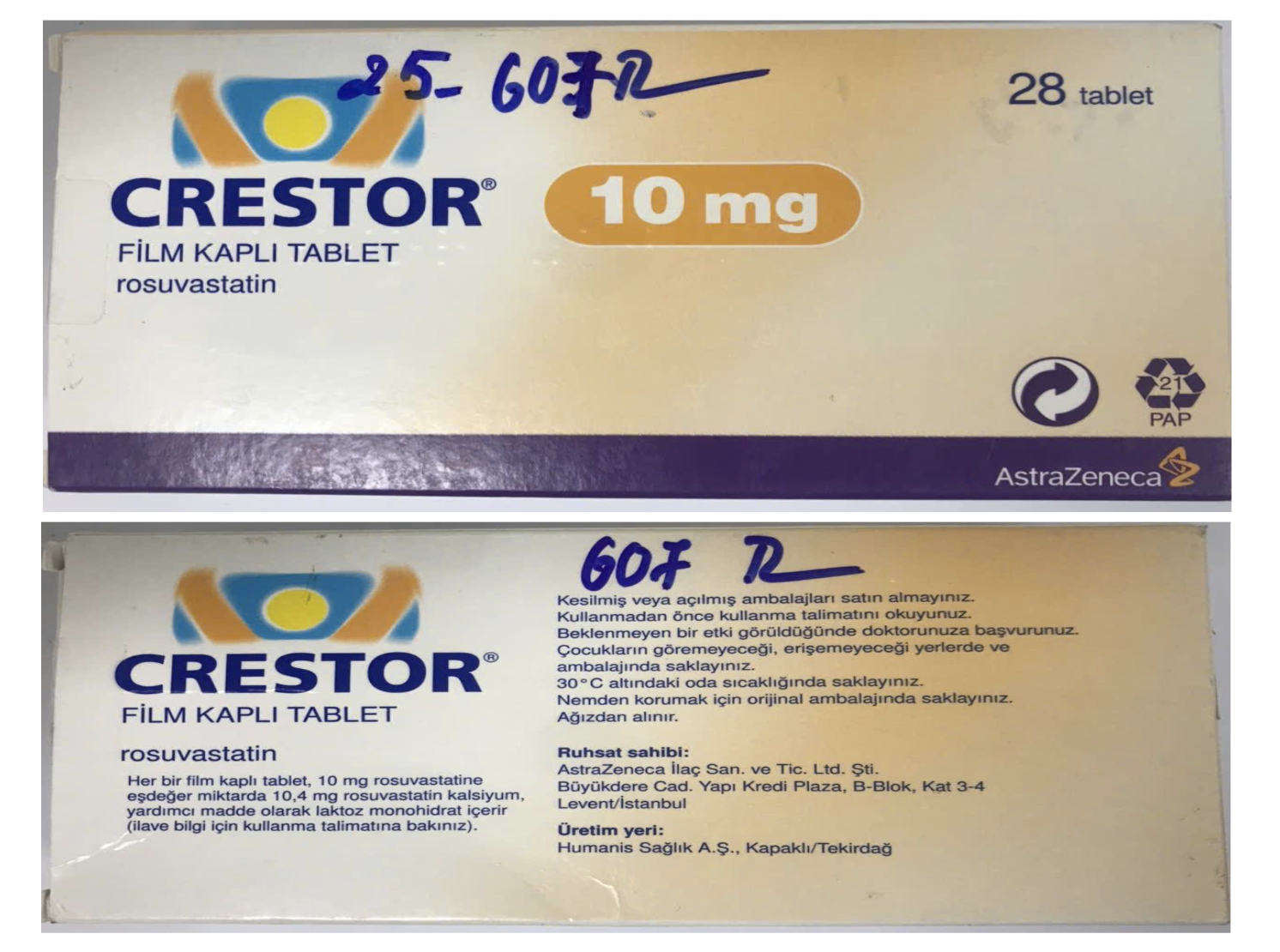 - Crestor 10mg (Rosuvastatin); Số lô: A24236004, Hạn dùng: 07.2027 (dùng để điều trị tăng cholesterol máu và dự phòng các bệnh tim mạch do xơ vữa (bệnh mạch vành, đột quỵ và bệnh động mạch ngoại biên).