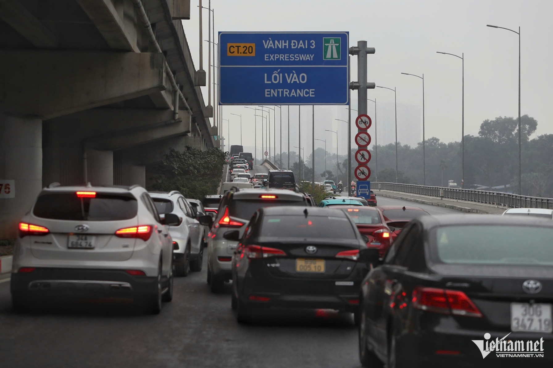 Đường lên Vành đai 3 trên cao ùn tắc cục bộ.