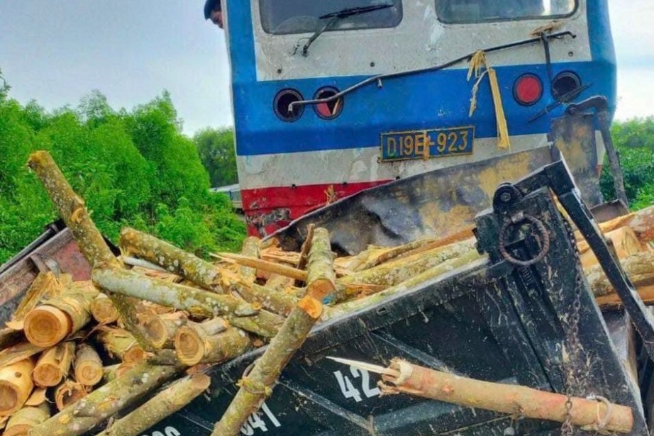 Va chạm với tàu khách Bắc-Nam, xe tải gãy làm đôi