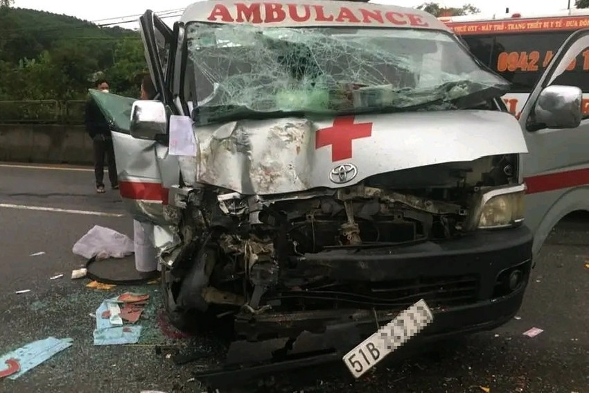 Xe cứu thương chở thi hài tông trúng ô tô buýt