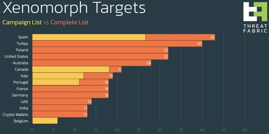 Xenomorph lần đầu tiên được phát hiện vào tháng 2/2022, được hackers cài cắm vào bên trong ứng dụng Fast Cleaner, ứng dụng được quảng cáo là chuyên dọn dẹp rác và cải thiện hiệu quả sử dụng pin smartphone, có trên Google Play Store. Theo Threat Fabric, thời điểm đó, có đến hơn 56 ngân hàng châu Âu, từ Tây Ban Nha, Bồ Đào Nha, Ý và Bỉ, đã bị mã độc Xenomorph này nhắm đến.