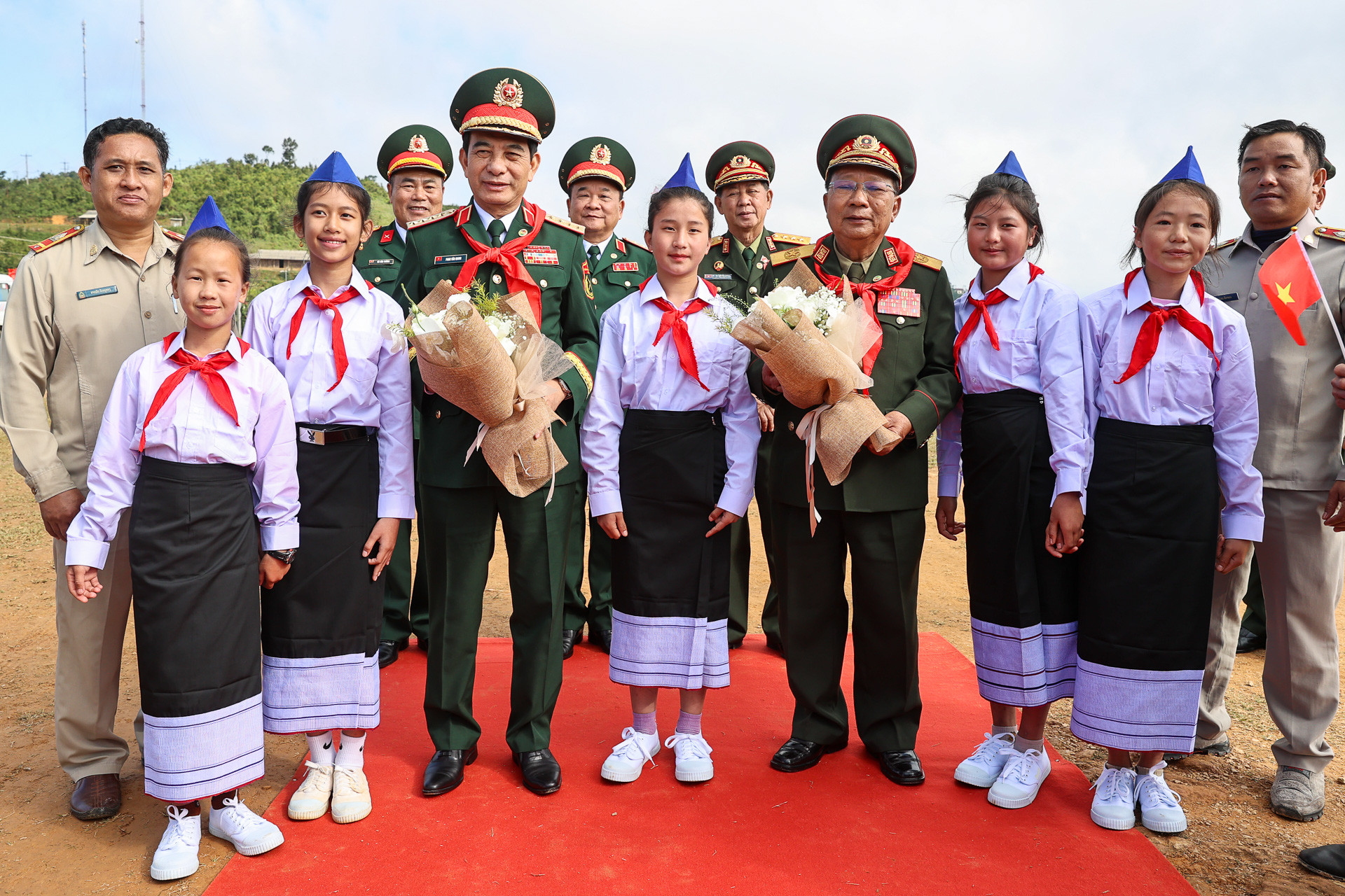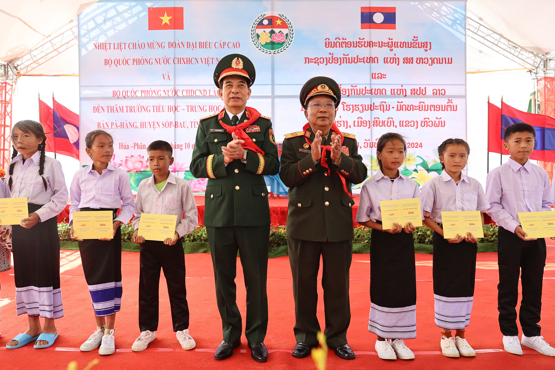 Đại tướng Phan Văn Giang và Đại tướng Chansamone Chanyalath cũng đã đến thăm, tặng quà Trường Tiểu học - Trung học cơ sở Pahang.