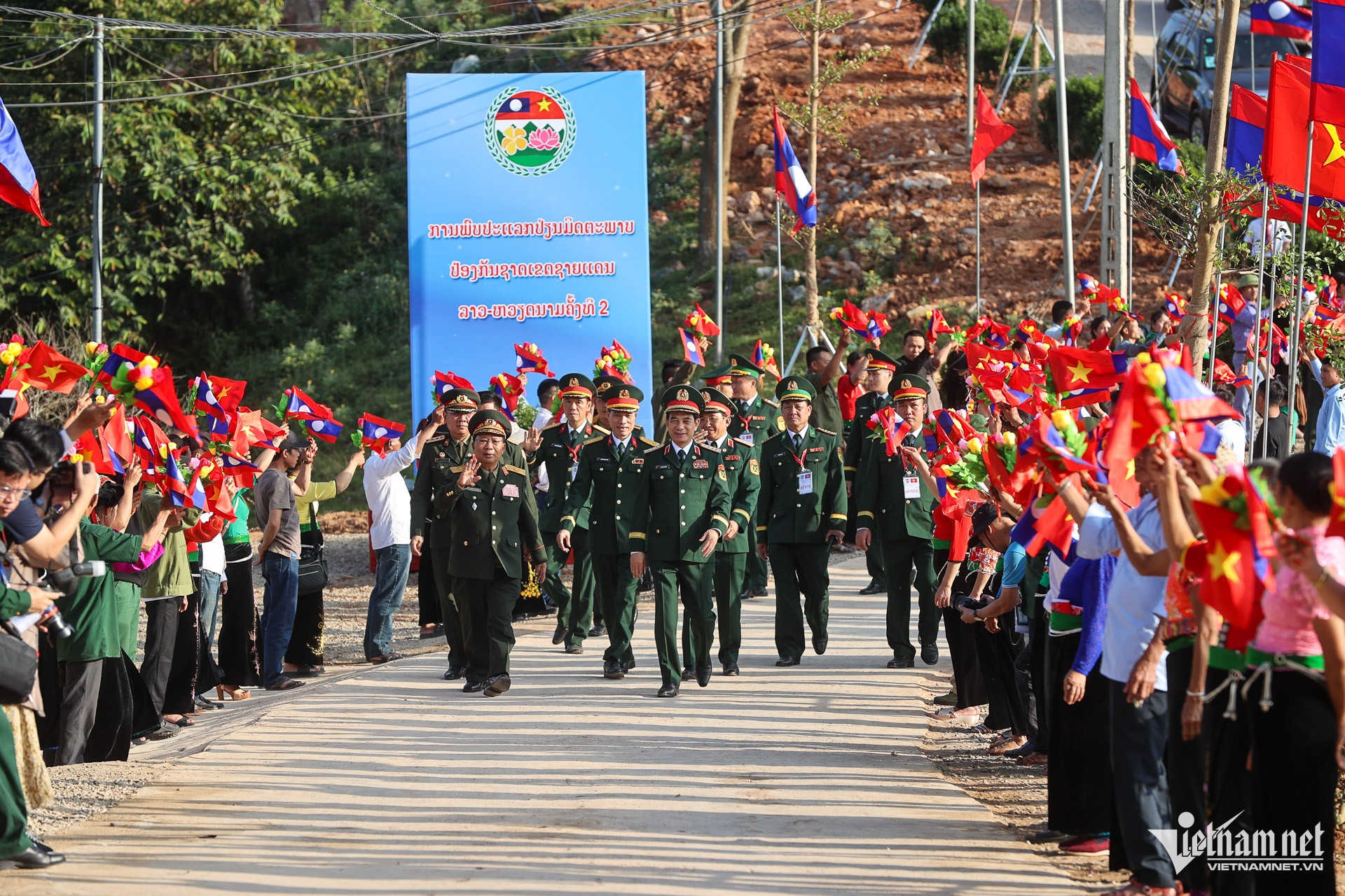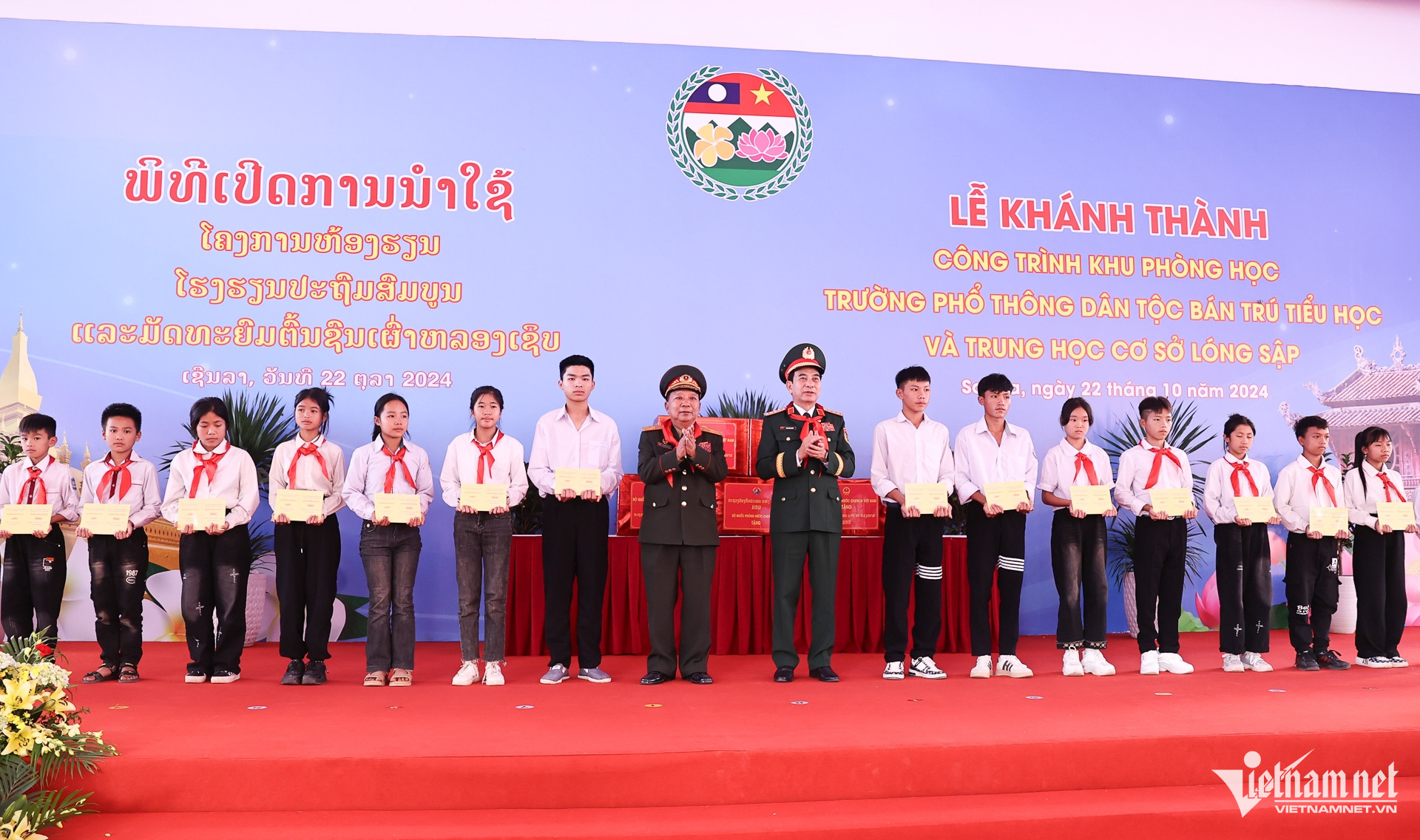 Lãnh đạo Bộ Quốc phòng hai nước đã dự lễ khánh thành công trình khu phòng học Trường Phổ thông dân tộc bán trú Tiểu học và Trung học cơ sở Lóng Sập.