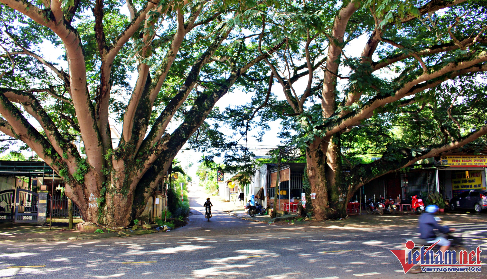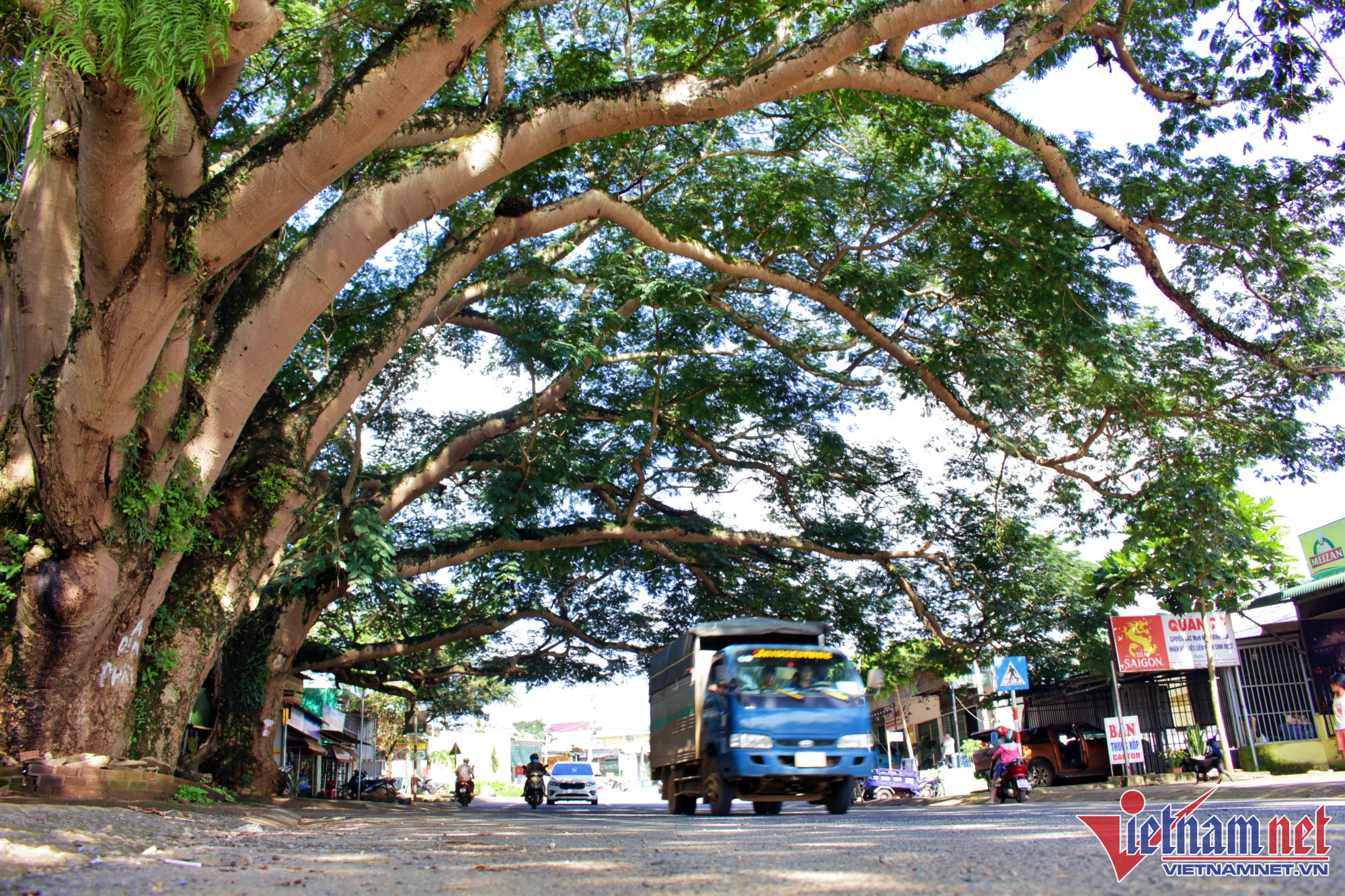 Đặc biệt, những nhánh khổng lồ của 2 cây điệp vươn xa, phủ bóng qua bên kia đường quốc lộ 20. Người, xe di chuyển dưới tán cây hệt như đang đi xuyên qua đoạn đường có mái vòm bằng lá xanh mát.