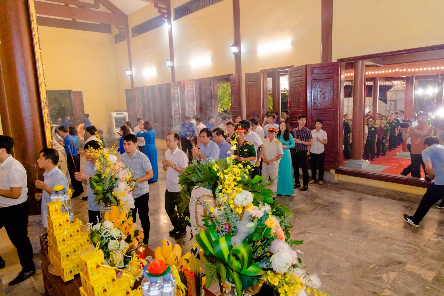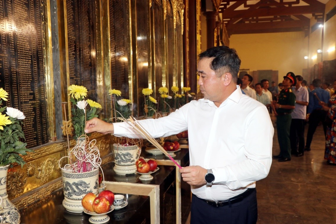 Sau khi thực hiện nghi thức dâng hương, các lãnh đạo trung ương, tỉnh, các đại biểu và nhân dân; đoàn viên thanh niên đã đặt hoa, dâng hương, thả hoa đăng để tỏ lòng thành kính, tri ân, tưởng nhớ đến các Anh hùng Liệt sĩ.