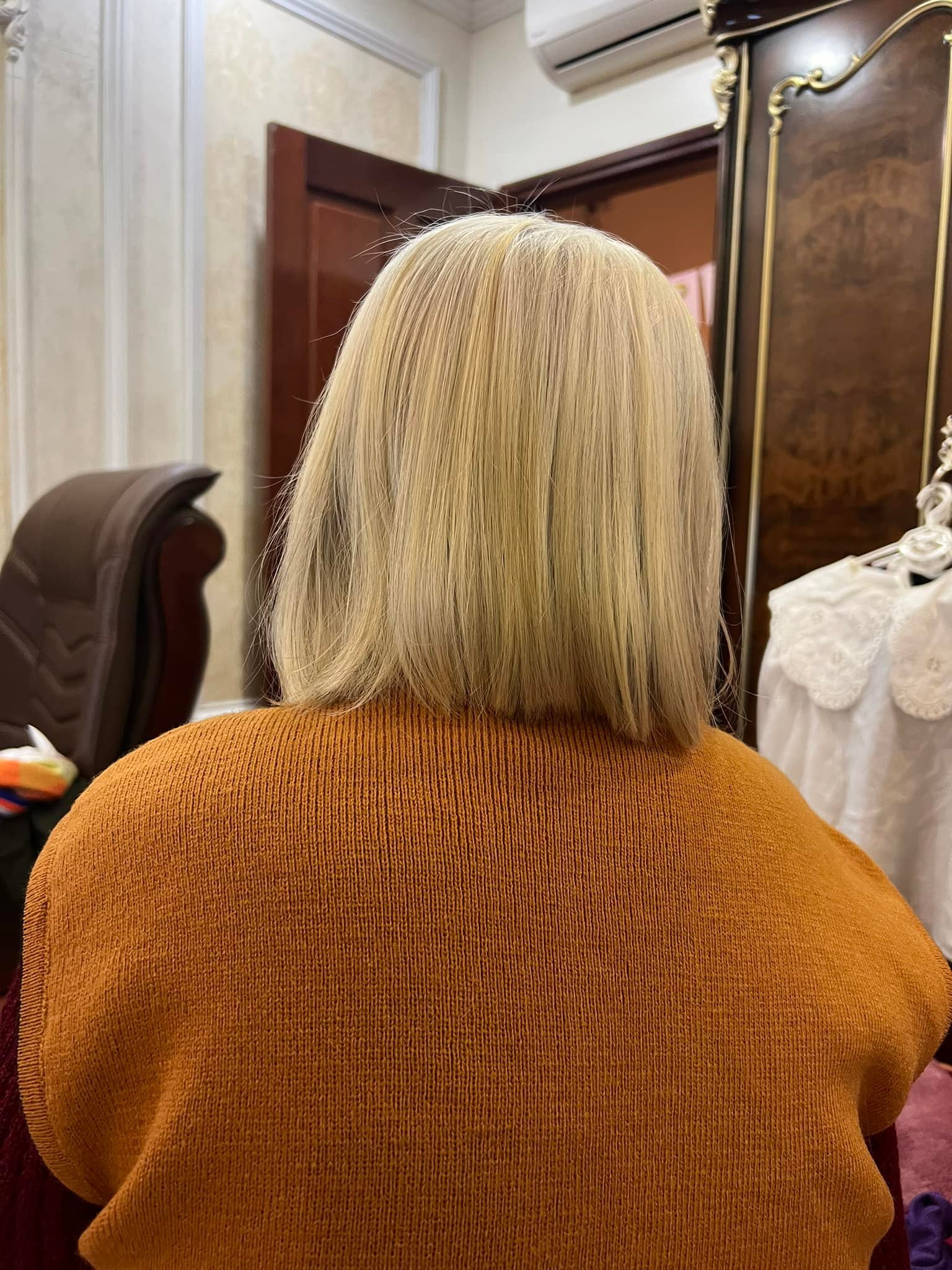 | Lần thứ nhất tôi xuống tóc cho mẹ, mẹ bảo tôi cắt y như kiểu của tôi. Cắt xong tôi thấy mình ở tuổi 80 sẽ gọn ghẽ, sạch sẽ và "xinh đẹp" thế này. |