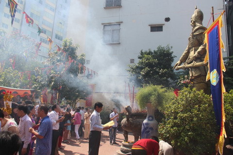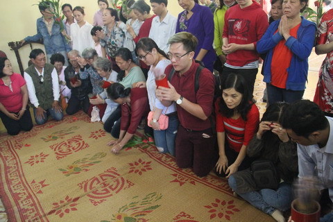 ![]() Dâng hương trước tượng Hưng Đạo Vương. ![]() Xin lộc |