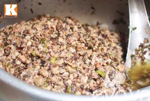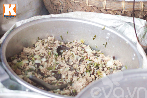 Bánh đúc nóng không thể thiếu món nhân làm từ thịt xào hành, mộc nhĩ giòn giòn, ngậy ngậy |
