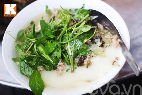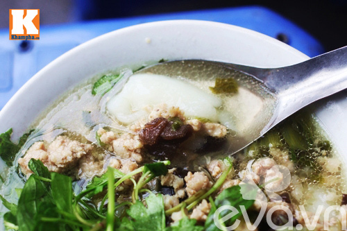 Bánh đúc ở đây khá loãng, không quá dẻo, nước dùng trong và có váng mỡ |