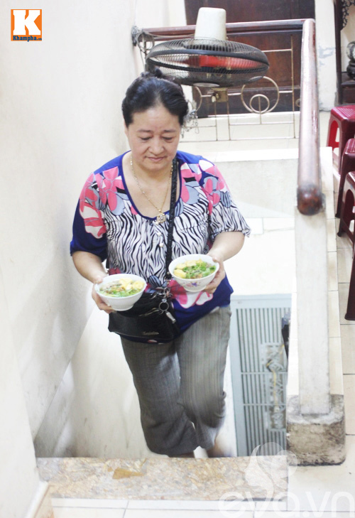 Không có gian quán riêng rộng rãi như nhiều hàng quán khác, bà chủ tận dụng chính căn nhà ở của mình cho khách ngồi ăn chật kín các tầng |