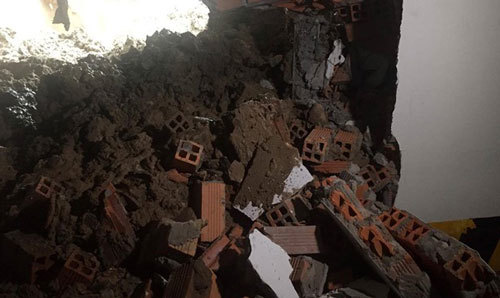 Sự cố cũng khiến cho lối đi xuống hầm B2 của cư dân trong chung cư bị bịt kín. Nhiều mảng tường khác cũng bị thấm nước, có dấu hiệu sắp vỡ.