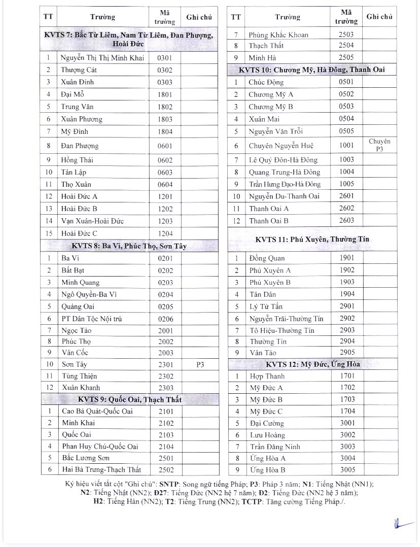 Sở GD-ĐT Hà Nội cho biết đã công bố danh mục mã số của từng trường THPT công lập. Từ nay đến 24/4, học sinh lớp 9 trên địa bàn thành phố viết “Phiếu đăng ký dự tuyển vào lớp 10 THPT năm học 2023-2024”. Sở đã công bố danh mục mã số của từng trường THPT công lập để học sinh đăng ký nguyện vọng dự tuyển theo khu vực tuyển sinh.