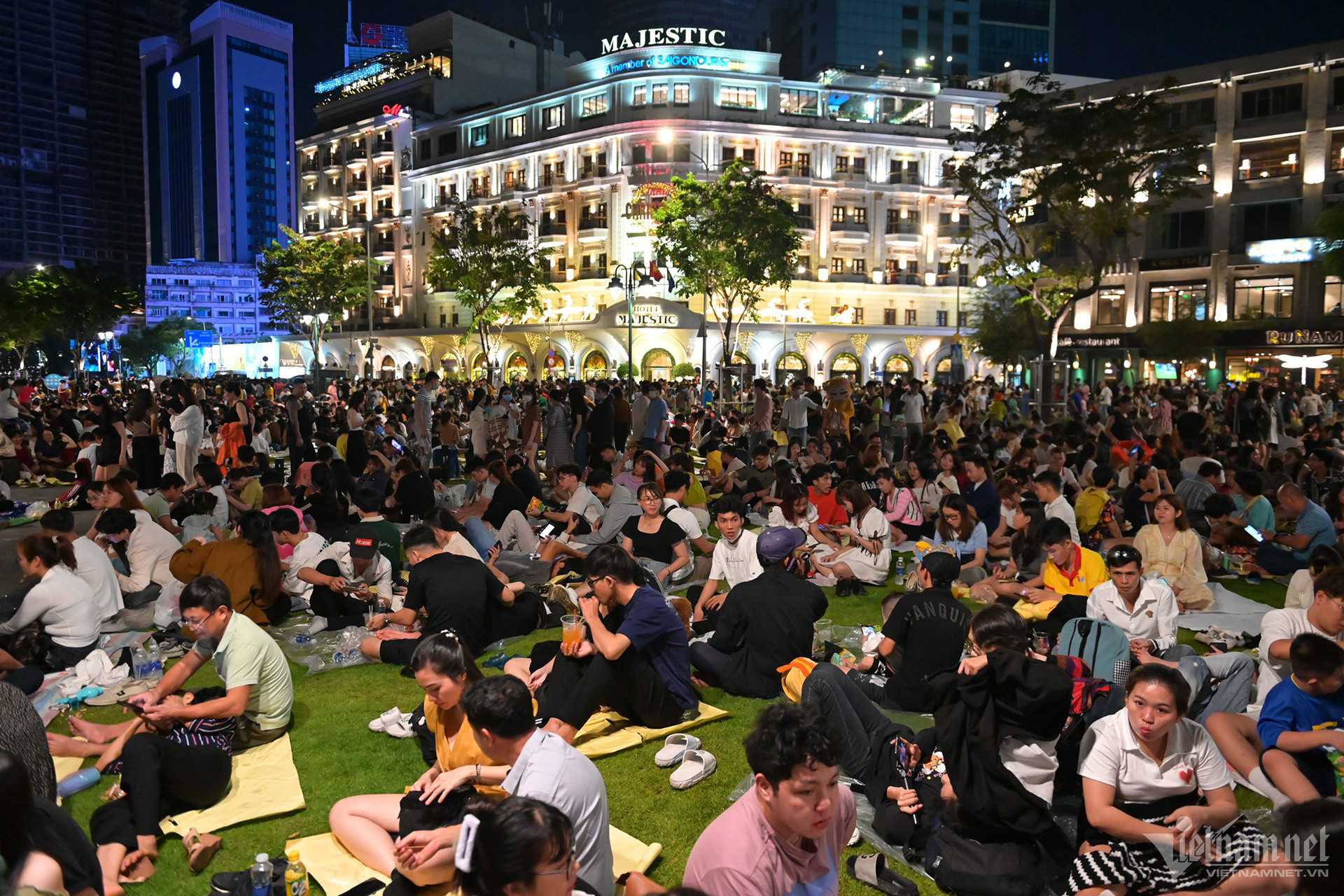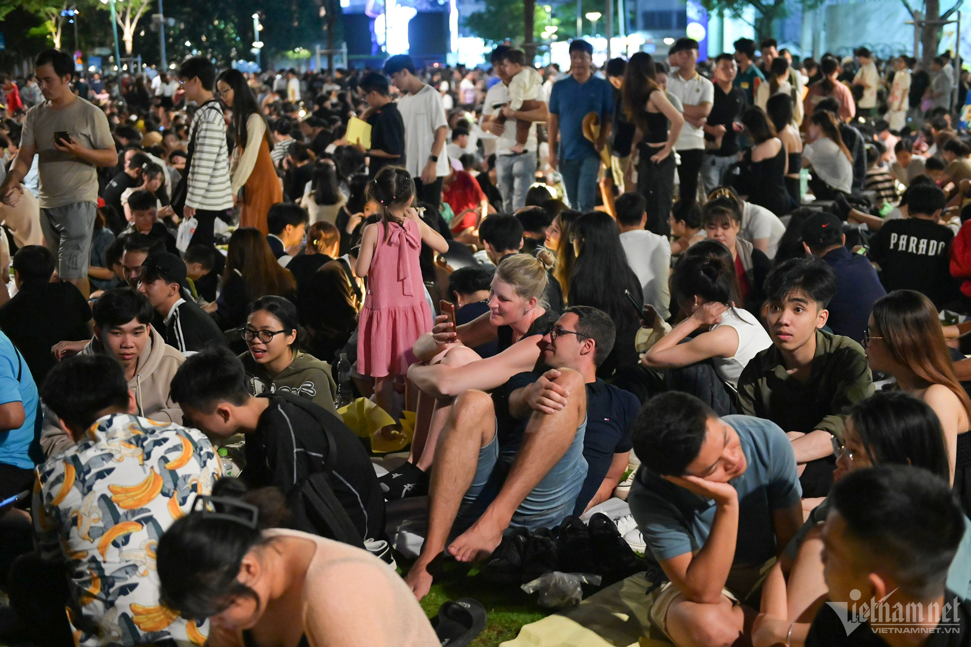 Công viên Bến Bạch Đằng bên bờ sông Sài Gòn là địa điểm xem pháo hoa lý tưởng nhất tại TP.HCM tối 31/12. Ngay từ 20h, nơi đây kín chỗ khi các gia đình đến sớm trải bạt ngồi ăn uống chờ đợi.