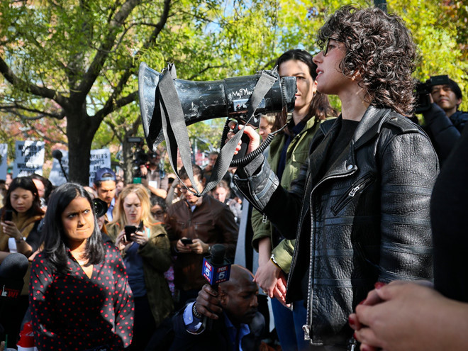 | Meredith Whittaker, cựu nhân viên Google, từng dẫn đầu phong trào biểu tình chống lại văn hóa làm việc độc hại của công ty này. Ảnh: AP |